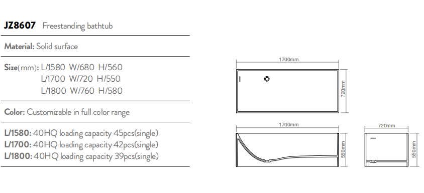 Elevate your bathroom with this sleek rectangular freestanding bathtub! Crafted from premium solid surface material in a muted warm gray finish, it features clean, minimalist lines and a deep, ergonomic interior for a luxurious soak.Durable, stain-resistant, and easy to clean, this tub is perfect for contemporary, minimalist, or Japandi-style bathrooms. Its compact rectangular design fits seamlessly in master baths, small spaces, or luxury hotel suites, adding a timeless, understated focal point to your home spa.
